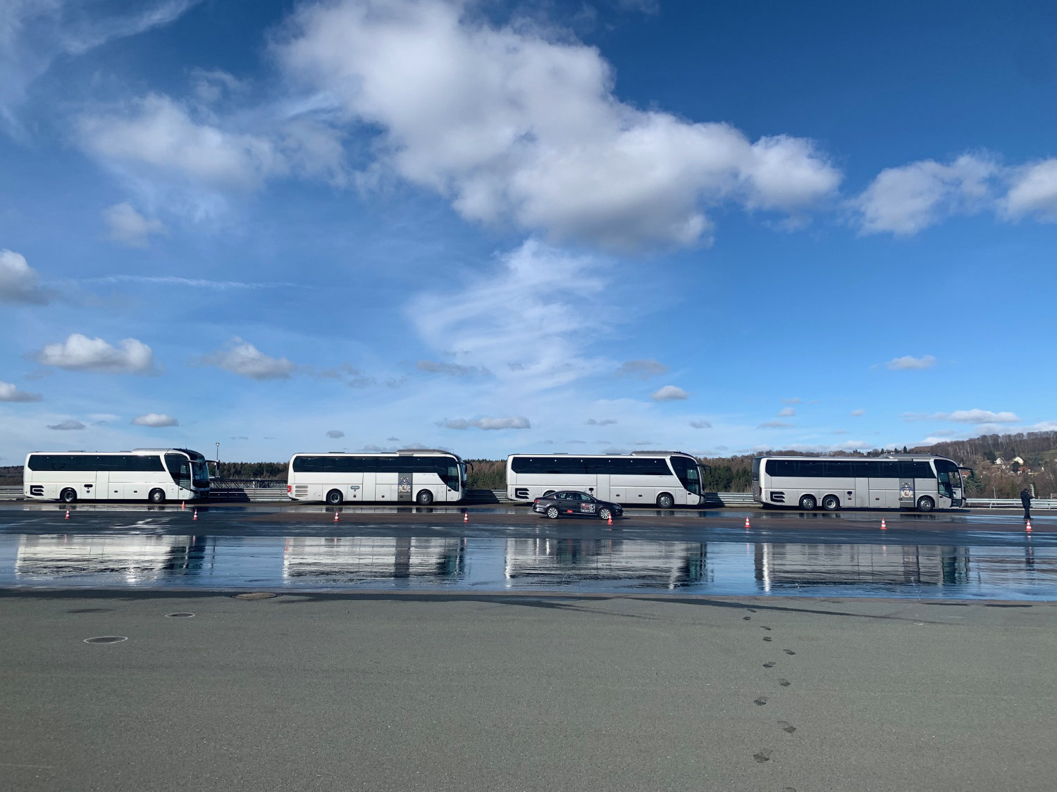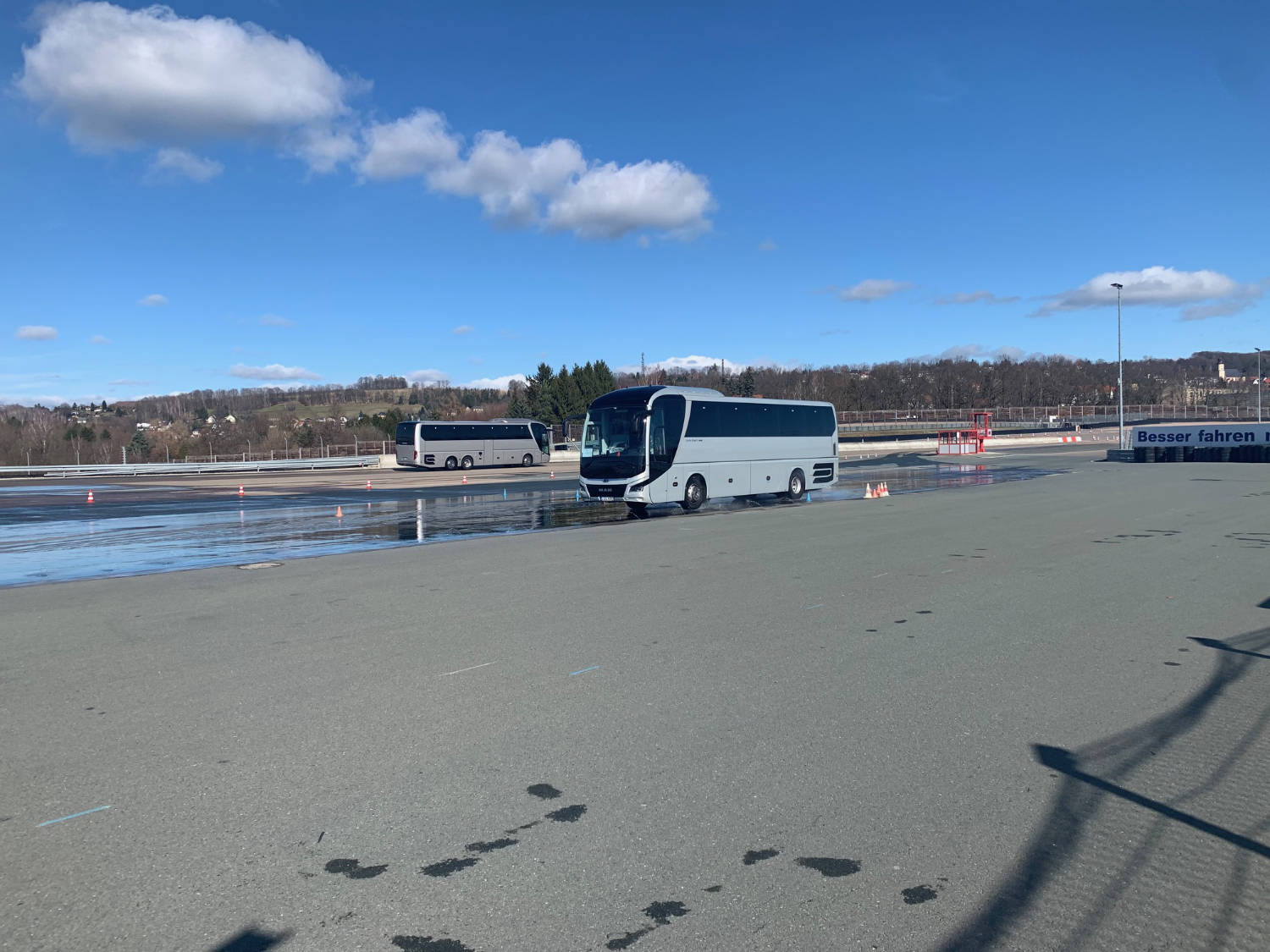 Am 02.03.2020 fand für unsere Busfahrer wieder das alljährliche Fahrsicherheitstraining auf dem Sachsenring statt. Dieses Mal waren wir mit vier Bussen vor Ort. Das theoretische Wissen, z. B. über die Fahrphysik, wurde aufgefrischt und es waren zahlreiche praktische Übungen und Fahrmanöver zu absolvieren.